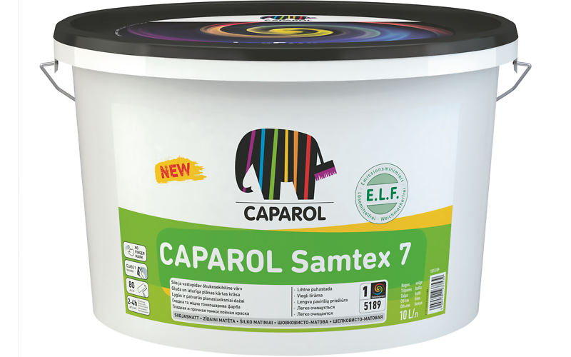 CAPAROL Samtex 7 tonuojami ColorExpress spalvinimo mašinomis pagal Caparol spalvynus. Prieš dengiant, būtina patikrinti, ar produktas tonuotas tikrai norima spalva.