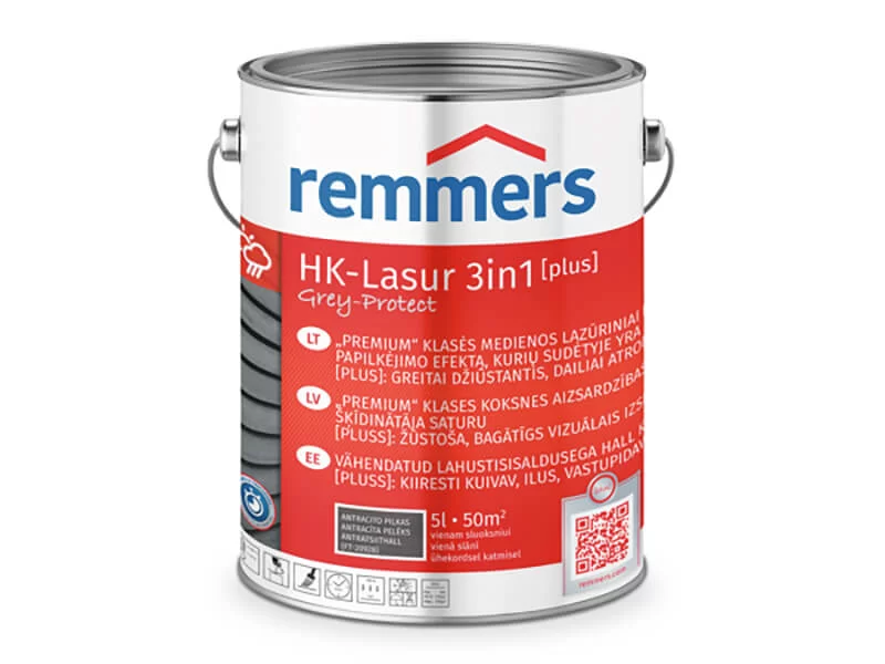 Remmers HK Lasur 3in1 [plus] Grey-Protect – tai produktas, kuris vienu metu atlieka tris svarbias funkcijas: